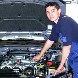| 8 Jahre später (1990) fing der Verfasser dieses Berichtes, Waldemar Lis, unter der damals üblichen Bezeichnung „Stift“ an, seine Zeichen in der Firma zu setzen. Nach erfolgreicher Gesellenprüfung und ein paar glücklichen Jahren als Mecha- niker bemerkte er, dass die Welt nicht nur aus Subaru-Fahrzeu- |